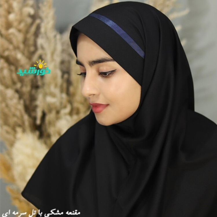 مقنعه تل دار مشکی 90 با تل سورمه ای بروجرد